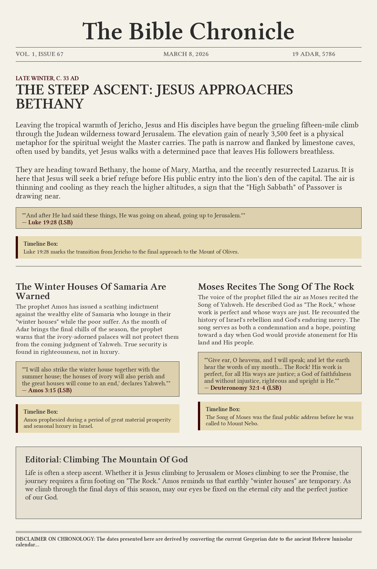 They are heading toward Bethany, the home of Mary, Martha, and the recently resurrected Lazarus. It is here that Jesus will seek a brief refuge before His public entry into the lion's den of the capital. The air is thinning and cooling as they reach the higher altitudes, a sign that the "High Sabbath" of Passover is drawing near.