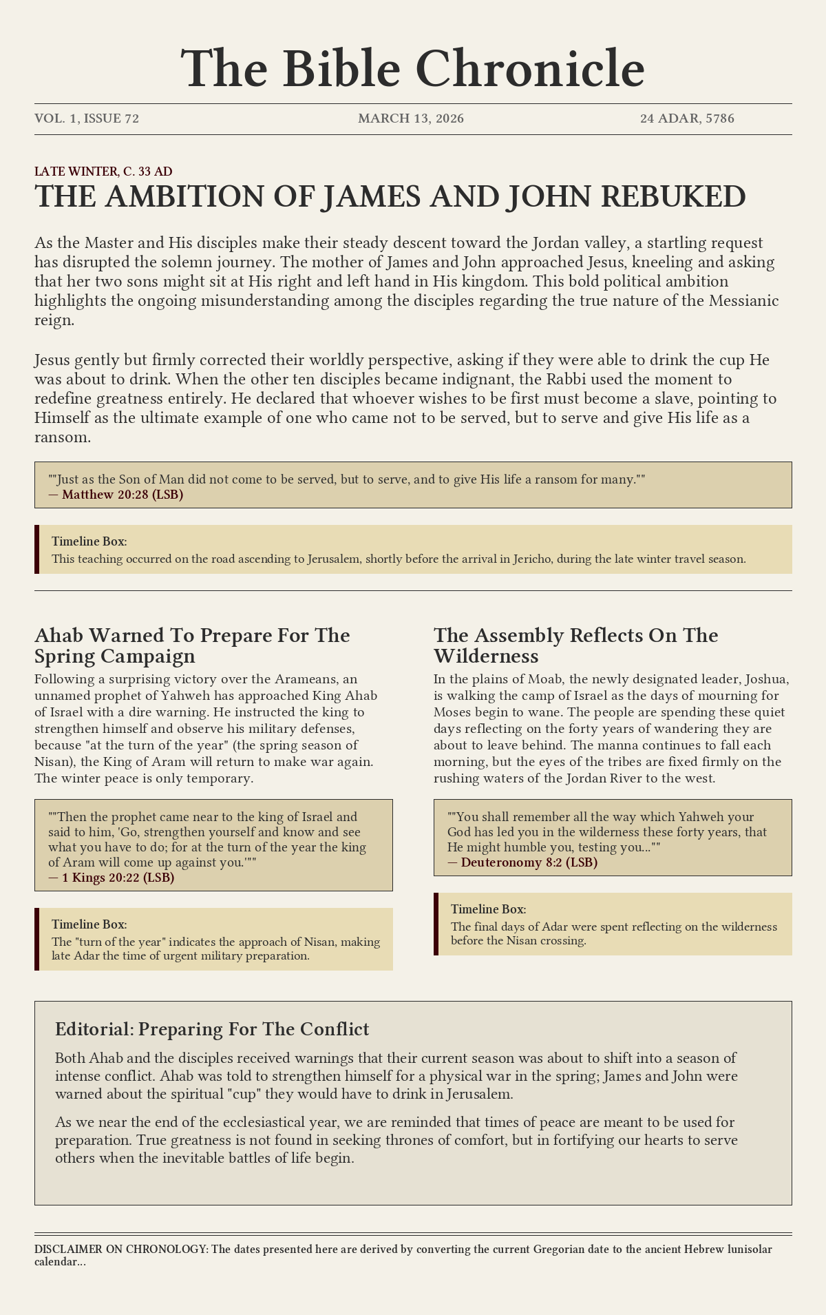 As the Master and His disciples make their steady descent toward the Jordan valley, a startling request has disrupted the solemn journey. The mother of James and John approached Jesus, kneeling and asking that her two sons might sit at His right and left hand in His kingdom. This bold political ambition highlights the ongoing misunderstanding among the disciples regarding the true nature of the Messianic reign.