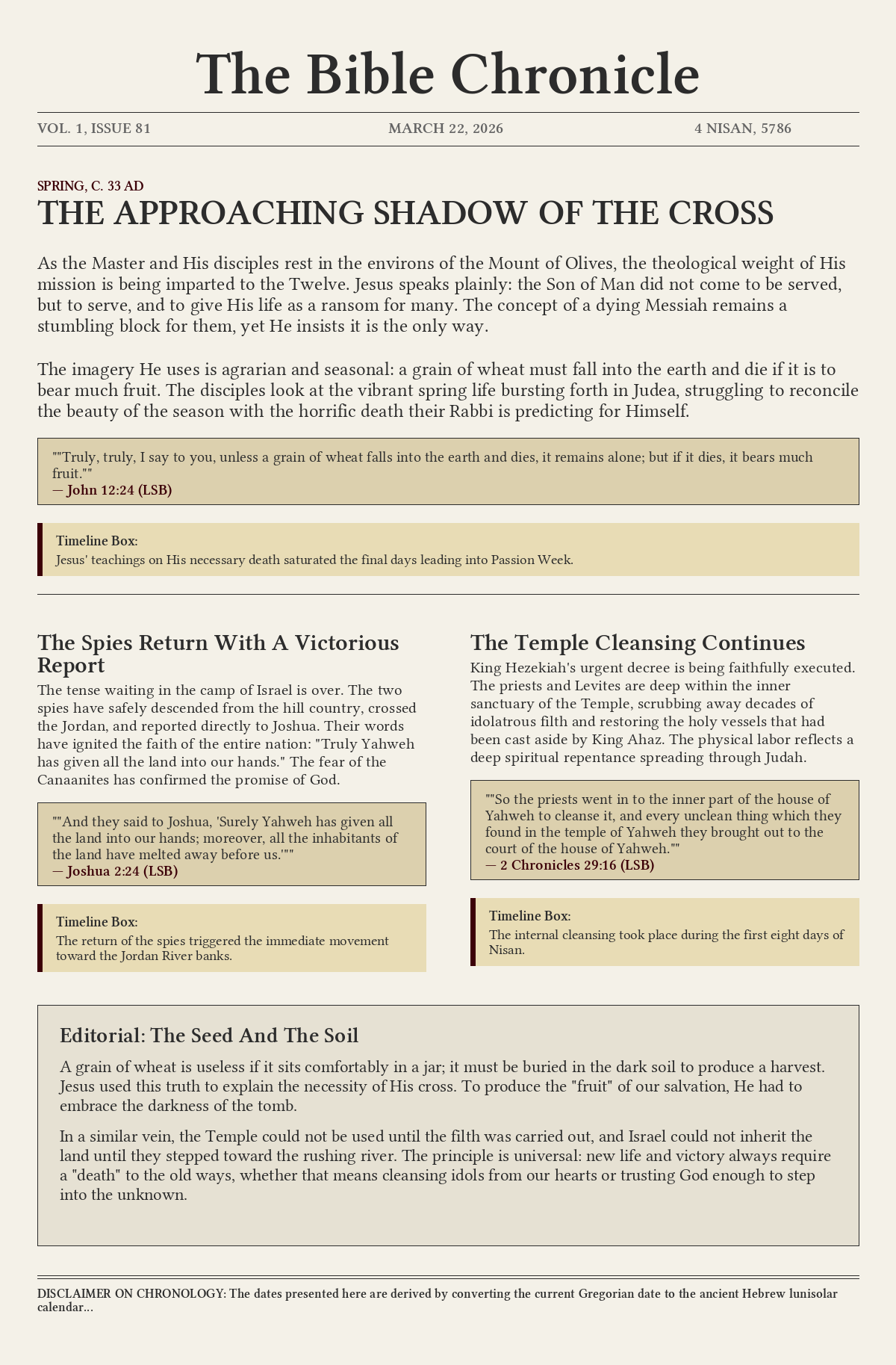 The imagery He uses is agrarian and seasonal: a grain of wheat must fall into the earth and die if it is to bear much fruit. The disciples look at the vibrant spring life bursting forth in Judea, struggling to reconcile the beauty of the season with the horrific death their Rabbi is predicting for Himself.