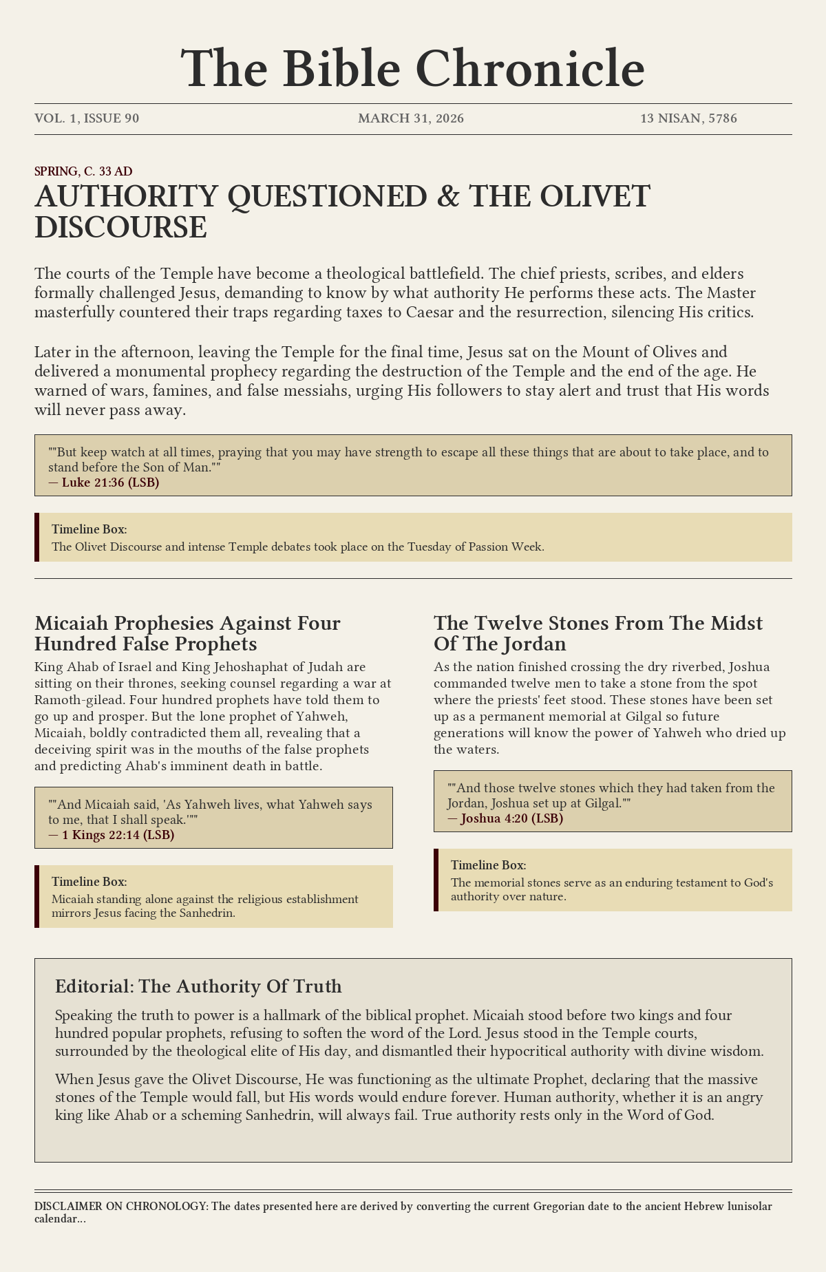 Speaking the truth to power is a hallmark of the biblical prophet. Micaiah stood before two kings and four hundred popular prophets, refusing to soften the word of the Lord. Jesus stood in the Temple courts, surrounded by the theological elite of His day, and dismantled their hypocritical authority with divine wisdom.