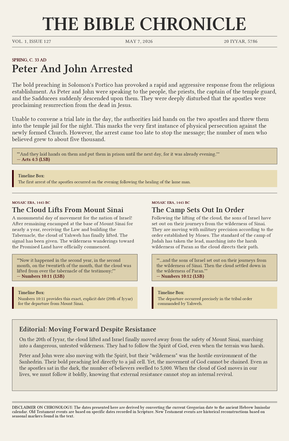 On the 20th of Iyyar, the cloud lifted and Israel finally moved away from the safety of Mount Sinai, marching into a dangerous, untested wilderness. They had to follow the Spirit of God, even when the terrain was harsh.