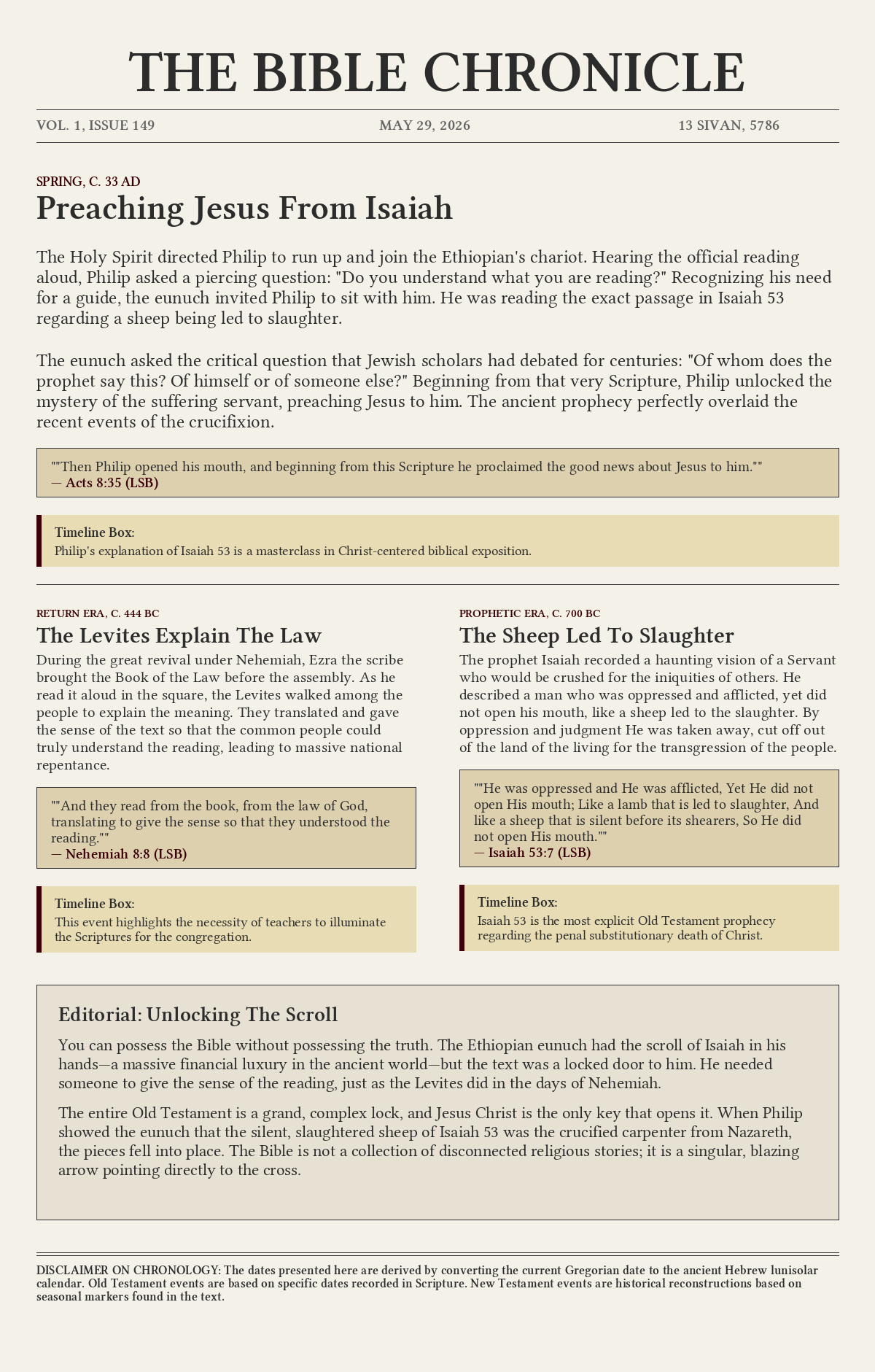 The entire Old Testament is a grand, complex lock, and Jesus Christ is the only key that opens it. When Philip showed the eunuch that the silent, slaughtered sheep of Isaiah 53 was the crucified carpenter from Nazareth, the pieces fell into place. The Bible is not a collection of disconnected religious stories; it is a singular, blazing arrow pointing directly to the cross.